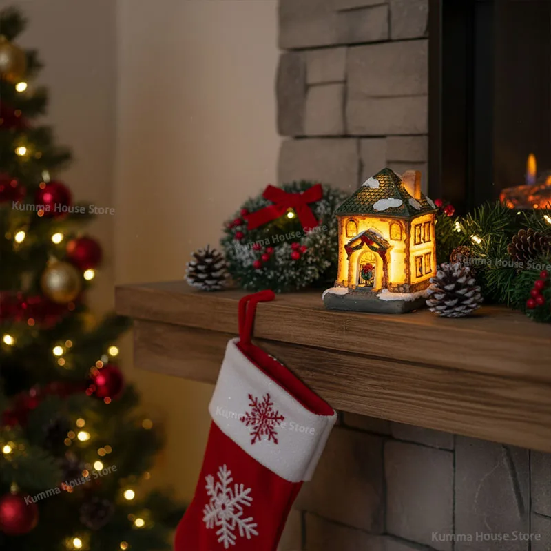 Christmas LED Light Wooden House, Luminous Cabin, Christmas Decorations for Home DIY Xmas Tree, Ornaments Kids Gifts New Year